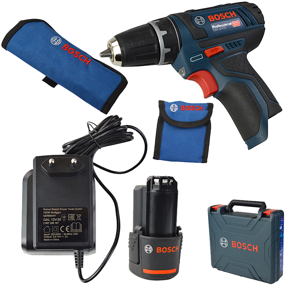 - Bosch GSR 12V-15 Professional Bohrschrauber – ohne Akku und Ladegerät.