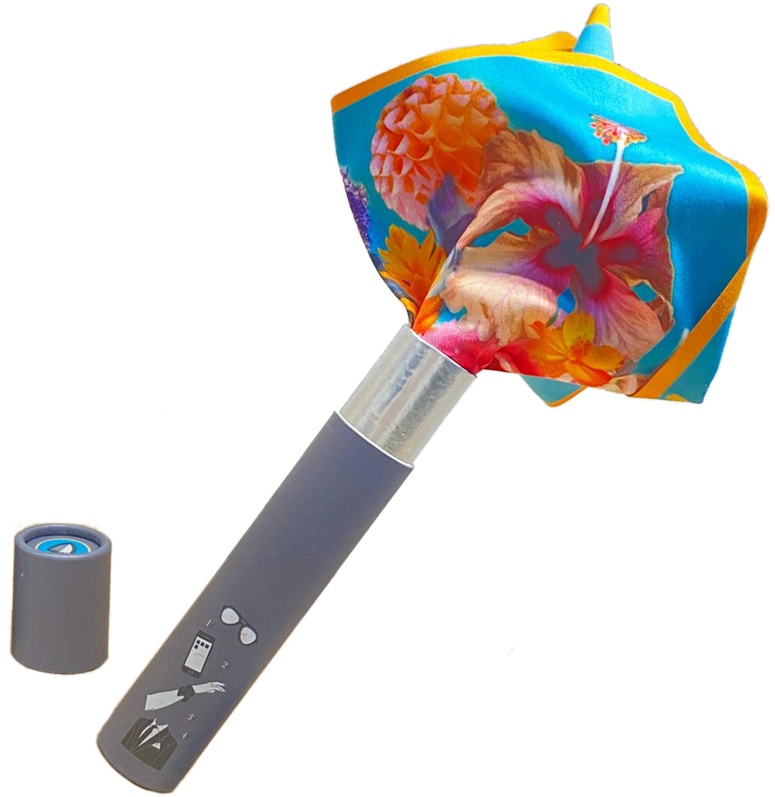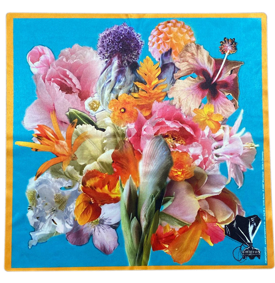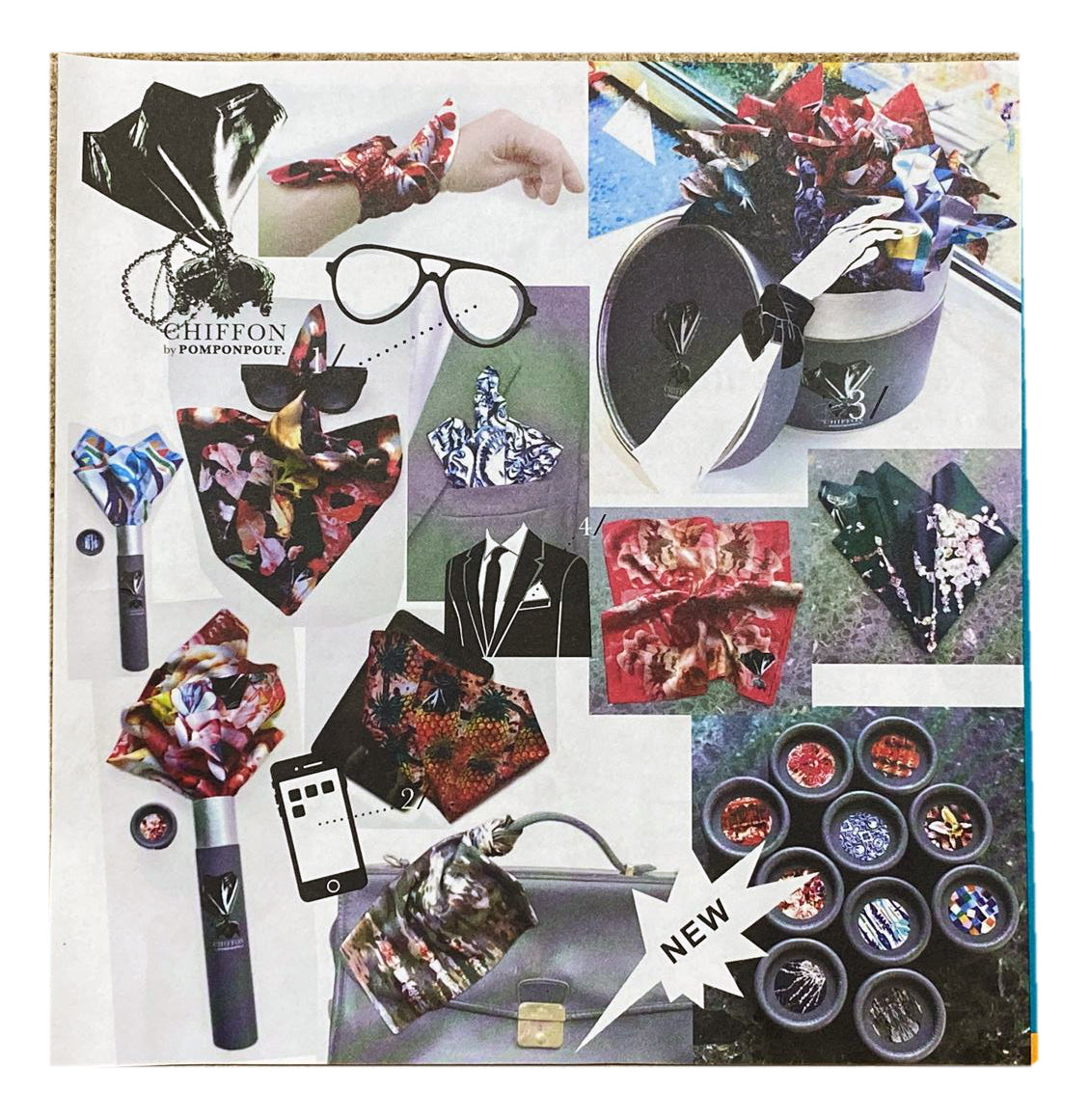 Ein kleines, feines Tuch, bedruckt mit extravaganten Bildcollagen.