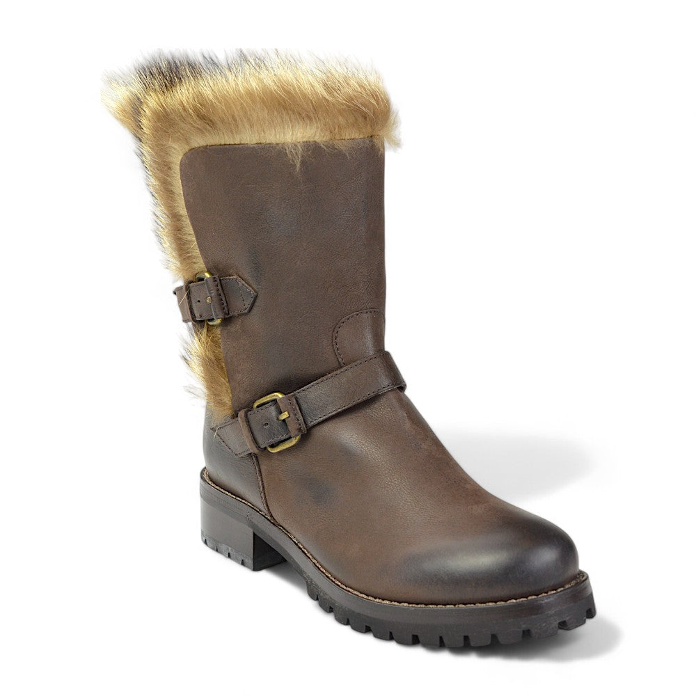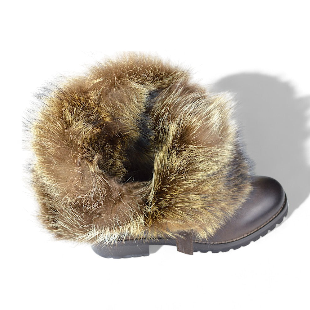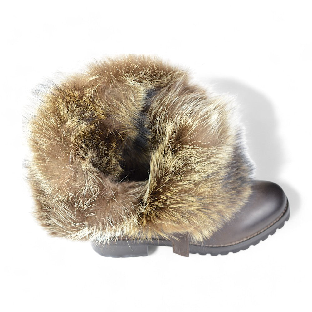 Ein besonderes Highlight ist das flauschige, fellähnliche Detail, das aus dem Schaft herausragt. Dieses luxuriöse Element verleiht dem Stiefel eine edle Note und macht ihn ideal für kalte Tage.