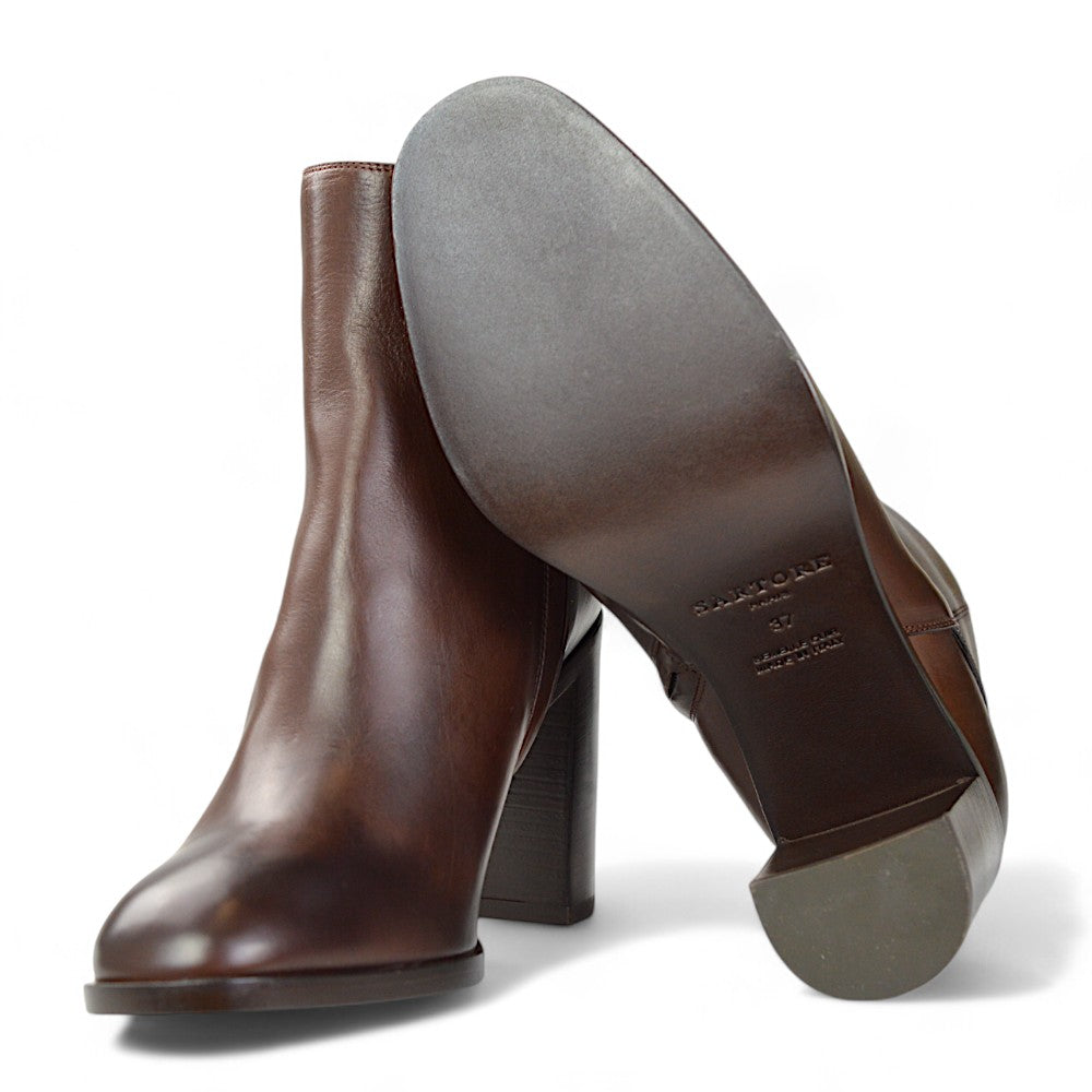 Diese eleganten, dunkelbraunen Stiefeletten von Sartore, Made in Italy, sind aus hochwertigem Leder gefertigt und kombinieren klassischen Chic mit modernem Design. Der Schuh besticht durch seine schlanke Silhouette und die Verwendung von glattem, glänzendem Leder, das eine edle und zeitlose Optik verleiht.